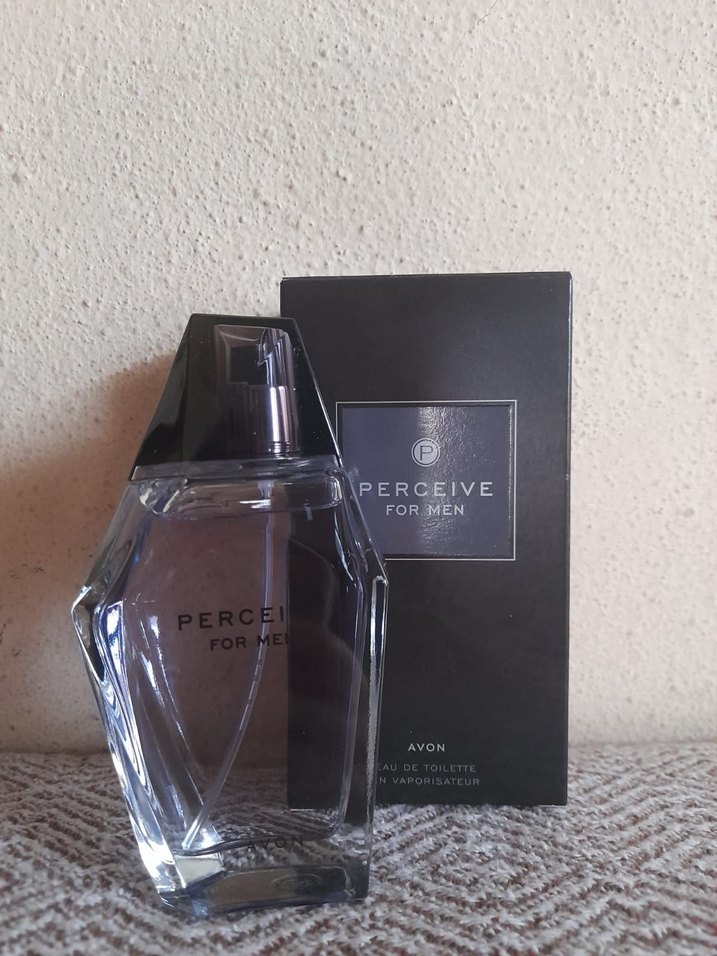 Perceive For Men, gri tonlarda modern klasik erkek parfümü, şık şişe ve siyah kutuda Avon tarafından sunuluyor. ️