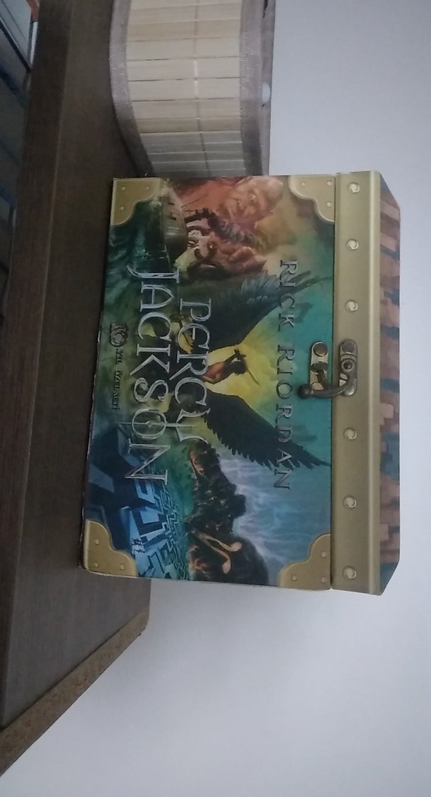 Rick Riordan imzalı Percy Jackson kitap seti, fantastik macera temaları ve mitolojik yaratıkların yer aldığı kapak tasarımıyla dikkat çekiyor. Sandığından çıkmadı kitaplar