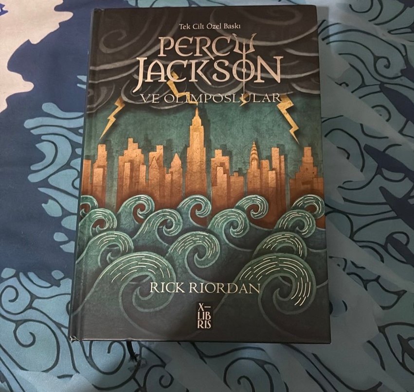 Rick Riordan'ın Percy Jackson ve Olimposlular serisinin tek cilt özel baskısı, şehir manzarası ve dalgalarla detaylı kapak tasarımına sahiptir.