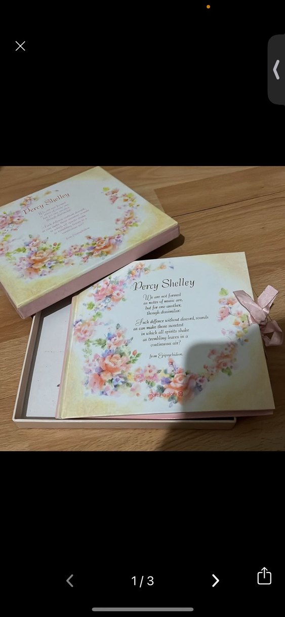 Percy Shelley'nin şiirlerini içeren, çiçek desenleri ve kurdele bağlamasıyla süslenmiş dekoratif bir ajanda kitabı.