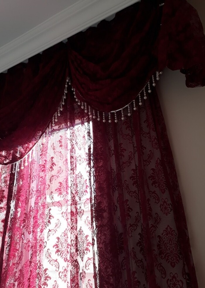 Bir adet boncuk püsküllü farbela iki adet kanat perde çok şıktır.