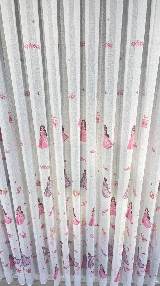 Hafif pembemsi renkte, prenses desenli baskılı perde, sade ve şık bir görünüm sunar. çocuk odası tül istediğiniz ölçüde dikiliyor metresi 175₺ brilland marka
