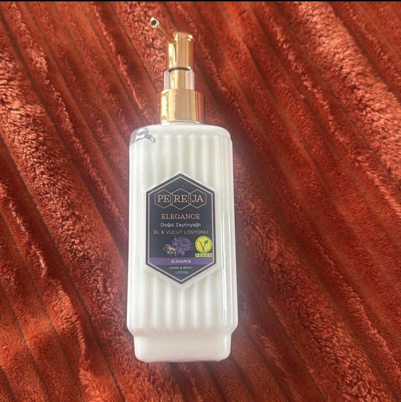 Pereja Elegance el ve vücut losyonu, doğal zeytinyağı içerir ve cildinize hafif nem ve bakım sağlar.