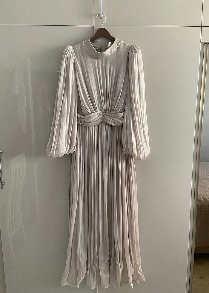 elbise bir kere giyildi. 42 beden tam oluyor. kusuru da yok yeni alındı zaten. elbise taş rengi.