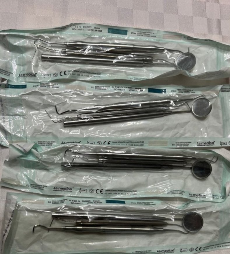 Ayna, periodontal sond ve scaler üçlüsünden oluşan 4 adet periodontal muayene seti. #perio #diş #hekimliği #hekim #fakültesi #fakülte #malzemeleri #malzeme #malzemesi #scaler #ayna #sond #muayene #seti #periodontoloji #klinik #staj #anasayfa #katalog #keşfet #gardrops