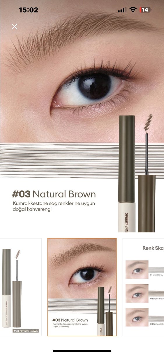 Kumral-kestane saç renklerine uygun doğal kahverengi maskara, hafif ve doğal bir görünüm sağlar. 1 kere bir kaşıma denemek için sürdüm rengi bana uymadı yeni bir şekilde duruyor. İhtiyacı olan biri değerlendirsin diye satıyorum. Misshadan aldım. #perıpera #missha #kaş #kaşmaskarası #vintage