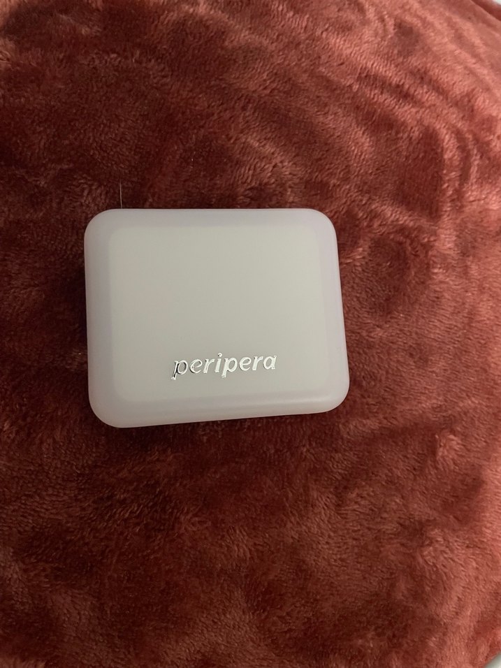 Peripera markasına ait bej renk makyaj süngeri, pürüzsüz uygulama için yumuşak dokulu.