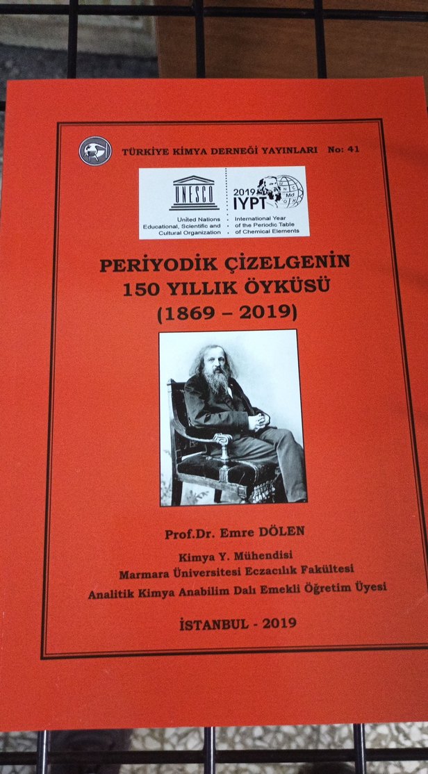 1869-2019 yılları arasındaki periyodik çizelgenin 150 yıllık tarihini anlatan Prof. Dr. Emre Dölen imzalı kitap.