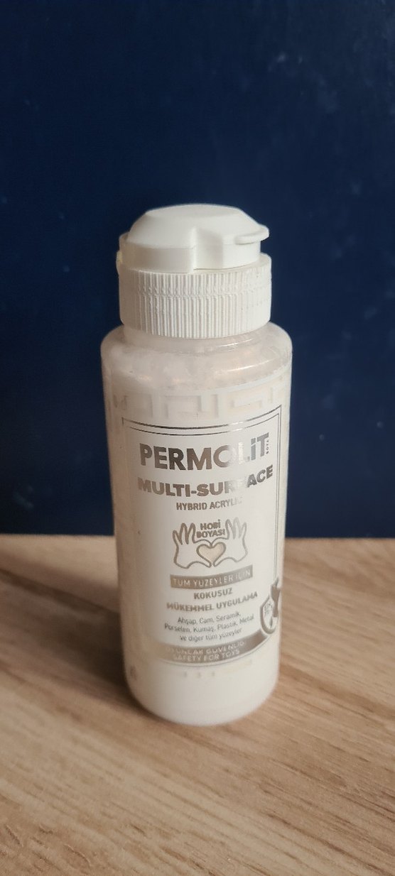 PERMOLİT MARKASININ AKRİLİK ORJİNAL BOYASIDIR. AHŞAP, CAM, SERAMİK, PLASTİK, KUMAŞ, PORSELEN, MERMER, METAL VE DİĞER TÜM YÜZEYLERE RAHATLIKLA UYGULANIR, SU BAZLI AKRİLİK BOYADIR. ÜRÜNÜN MİKTARI 120ML'DIR.