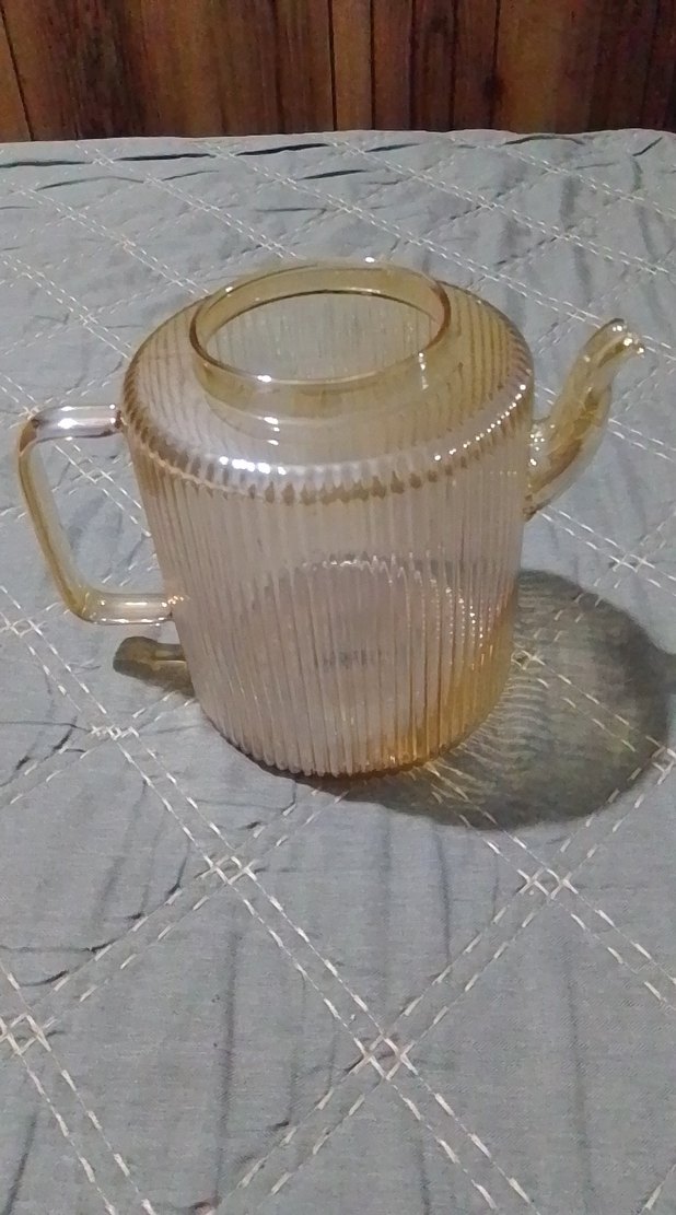 Bej renkte, şeffaf ve kabartmalı dokulu camdan yapılmış, kulplu ve ağızlı demlik. ☕1.75lt
