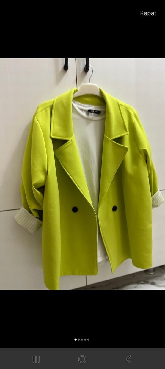 Sarı mini blazer, kesik yakalı ve düğmeli. Uzun kollu, rahat kesim ve yumuşak, sıcak kumaştan üretilmiştir. Günlük sokak stili için uygundur. standart beden 38-42 44 bedene uygun