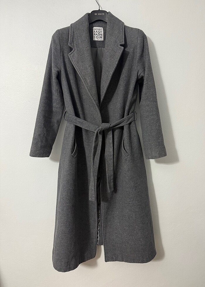Perry Fast Fashion marka, S beden gri kaban. Kuşaklı ve cepli modeldir. İçi astarlıdır. Kumaşı yumuşak ve tok durur