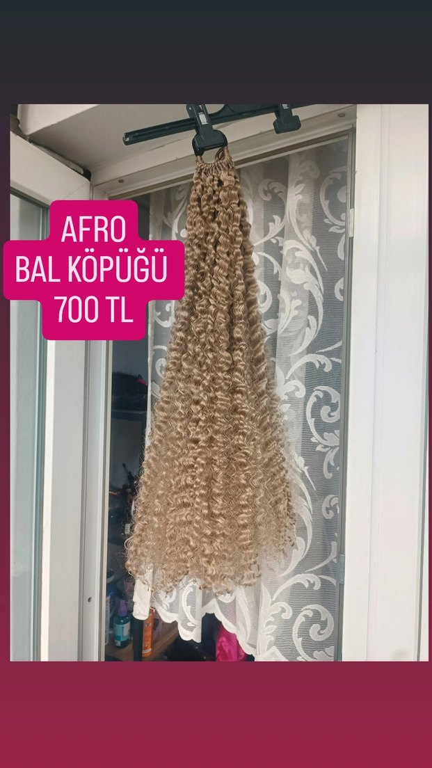 55 65 cm arası el yapımı bal köpüğü orta yoğun ince kıvırcık afro mix at kuyruğu kanekalon ürün ısıya dayanıklı tamamen mat parlama asla yapmaz kanca toka ve lastik toka ile yapılır genelde lastik toka öneriyoruz ılık su ile yıkanır el ile tarama yapılır fön suyu sprey yada saç açıcı sprey sıkılıp eliniz ile taramanız yeterli ince kıvırcık mix afro olarak geçer el işçiliğidir saç ürünlerinde hijyen açısından iade yoktur. TEK FİYAT İLAN AÇTIRINIZ