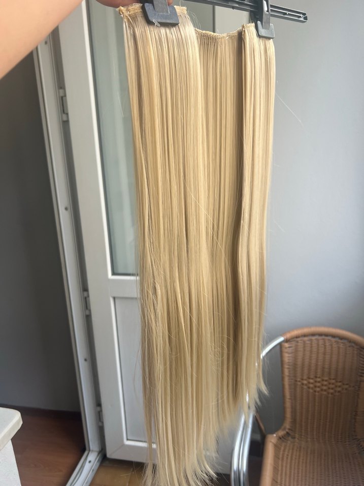 El dikimi ürün sentetik üstü kanekalon madde gerçek saça en yakın malzemedir ısıya dayanıklı fön maşa her türlü işlem yapılır yıkanabilir bal köpügü sarısı renginde Uzunluk : 60 cm , Genişlik : 23 cm Yan genişlik : 9 cm (Adet) , Ağırlık : 135 gr 3 parça yarım ay saç , 2 adet yan , 1 adet orta kısım Yan kısım 2’şer çıtçıt , Orta kısım 5 çıtçıttan oluşmaktadır. İade ve Değişim Yoktur. (hijyen açısından)