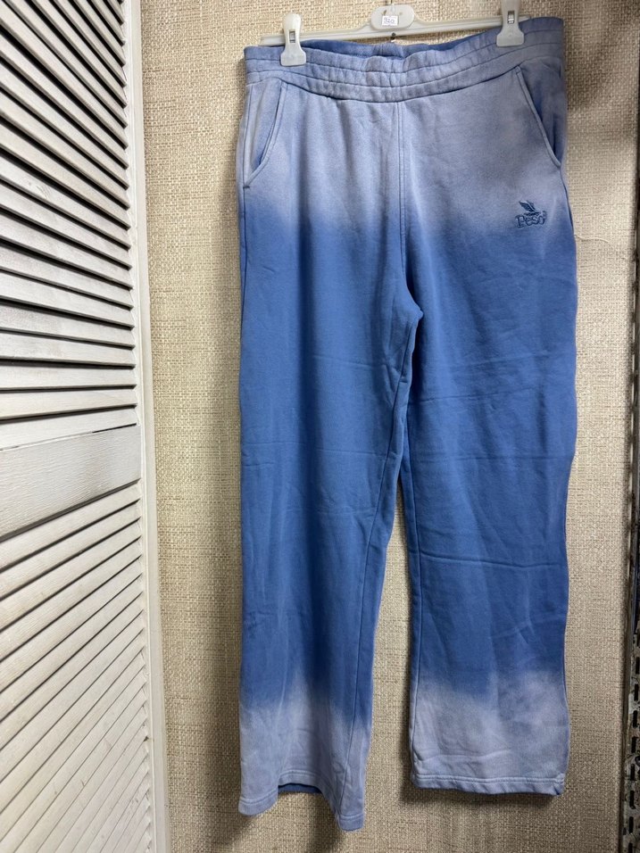 Peso marka Mavi pastel batik desenli, bol kesim eşofman altı. cepli ve rahat bel bantlı, sokak stili ve günlük kullanım için uygun.