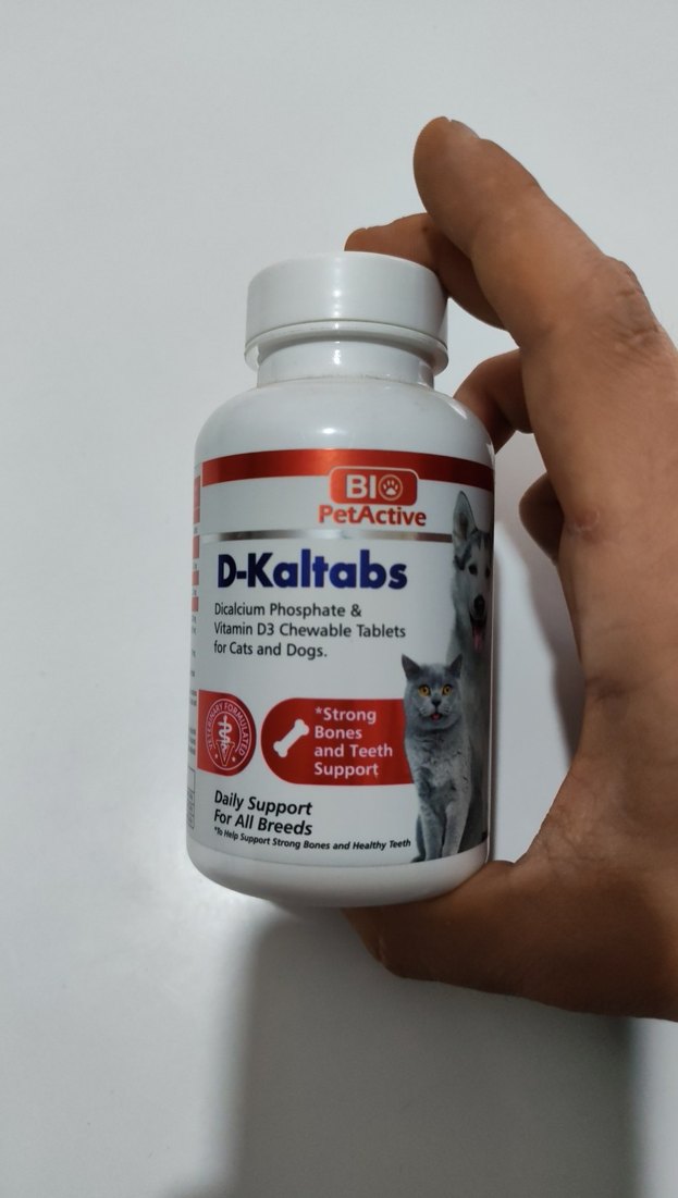 PetActive D-Kaltabs, kalsiyum ve D3 vitamini içeren çiğnenebilir tabletler olup, tüm ırk kedi ve köpeklerin kemik ve diş sağlığını destekler. Skt 10.26