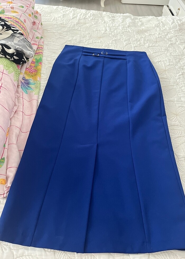Petrol mavi kalem kumaş etek