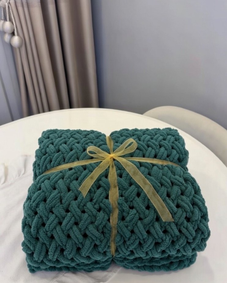 Petrol yeşili Örgü Çocuk Battaniyesi