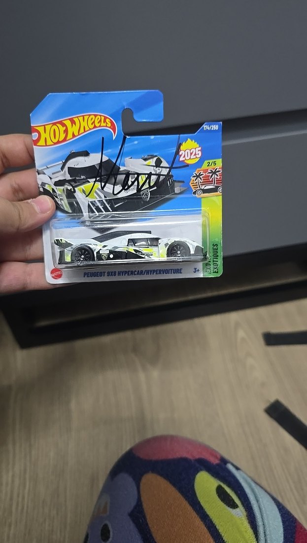 Hot Wheels Peugeot 9X8 oyuncak araba, koyu gri renkli ve detaylı yarış desenlerine sahip. 2025 serisinden, 3 yaş ve üzeri için uygundur. ️