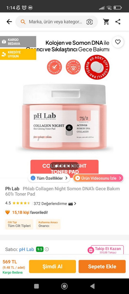 Ph Lab Collagen Night toner pad, somon DNA ve kollajen içerir, cildi gece onarmaya ve sakinleştirmeye yardımcı olur. Tüm cilt tipleri için uygundur.