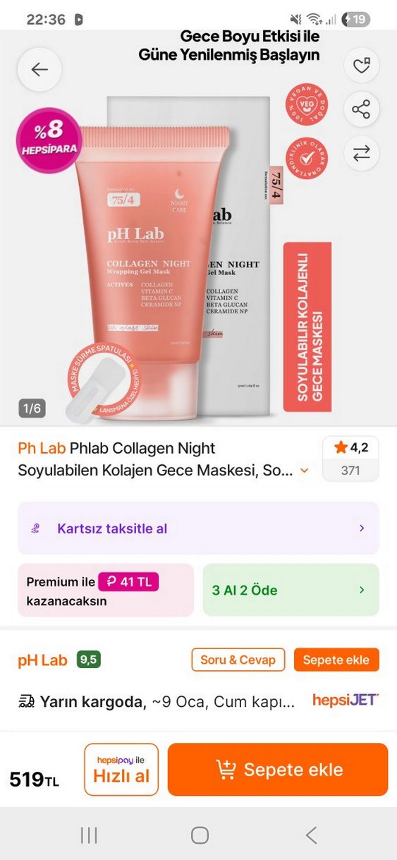 pH Lab Soyulabilen Kolajen Gece Maskesi