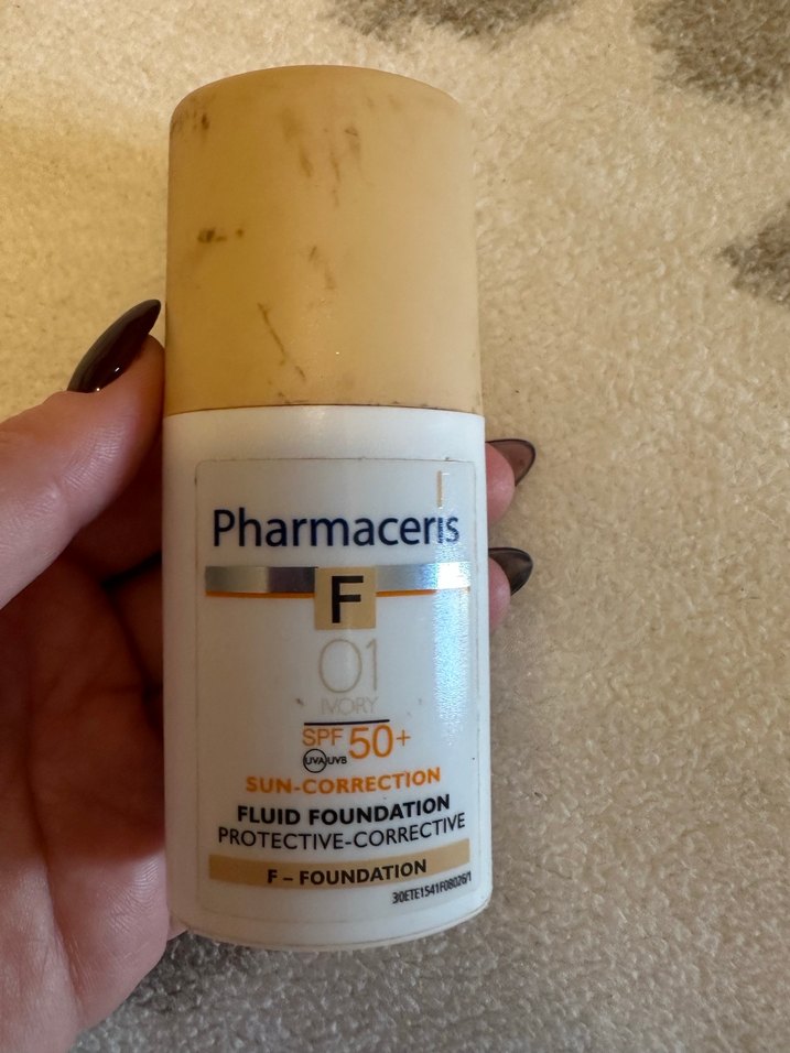 Pharmaceris sıvı fondöten, bej renkte, SPF50+ güneş koruması ve parlak bir görünüm sunar. Koruyucu ve düzeltici kapatma sağlar. ☀️