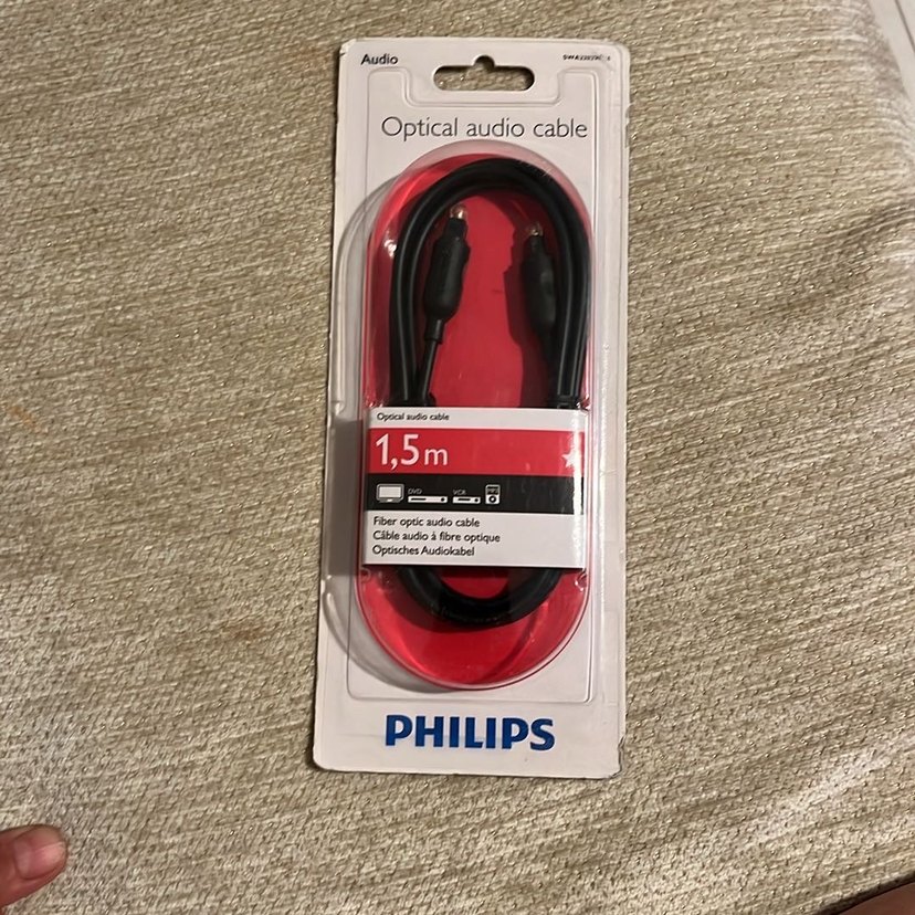 PHILIPS markalı, 1,5 metre uzunluğunda kırmızı optik ses kablosu, yüksek kaliteli dijital ses iletimi sağlar. Philips optik ses kablosu 1.5 m Philips Kablo & Sarf Malzemeleri 8 Yeni & Etiketli, Defosuz Desenli Fatura bilgisi Faturası yok Philips - - Philips Optik Ses Kablosu - 1,5 m • Orijinal ambalajında, hiç kullanılmamış. • Yüksek kaliteli fiber optik (Toslink) ses kablosu. • DVD, TV, CD, DAC ve ses sistemleri için ideal. • Gürültüsüz ve net dijital ses aktarımı sağlar.