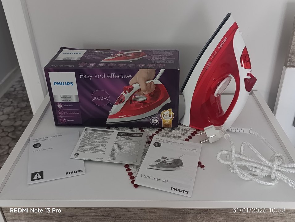 Renkli Philips ütü, 2000W gücüyle etkili ütüleme sağlar. Kullanım kılavuzu ile birlikte kolay ve etkili kullanıma sahiptir. garantisi bitmiştir