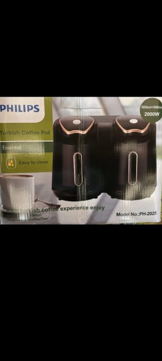 Philips Türk kahvesi makinesi, 2000W gücünde, iki adet 500ml kapasiteli cezve ile gelir. Temizlemesi kolaydır ve zengin kahve deneyimi sunar.