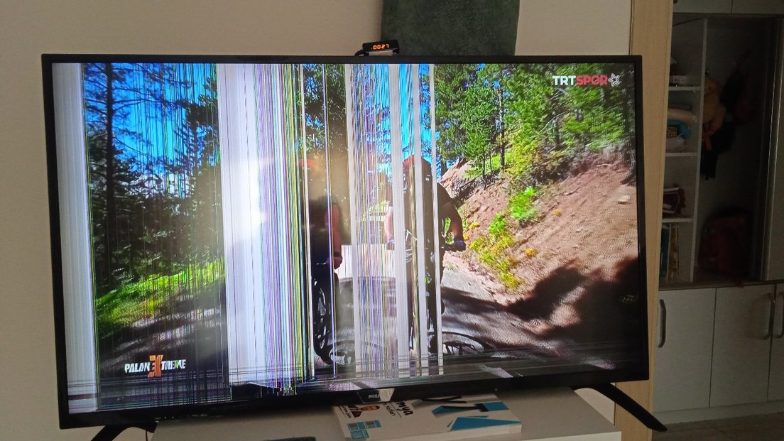 Philips marka, ekranında dikey çizgiler olmuş monitör. 108 ekran. Fiziki hiç bir darbe almamış. Smart ya da android değildir. Ayakları, kumandası ve kendi kutusuyla birlikte gönderilecektir.