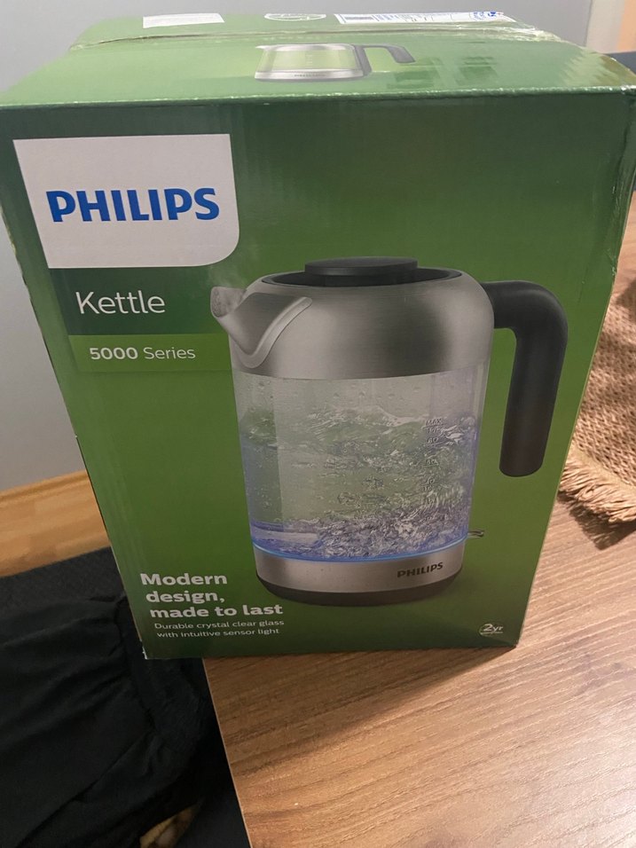 Yeni etiketli hiç kullanılmadı. Philips 5000 Serisi su ısıtıcısı, dayanıklı kristal cam gövde ve rahat tutma sapına sahip modern tasarımla su kaynatır. ☕