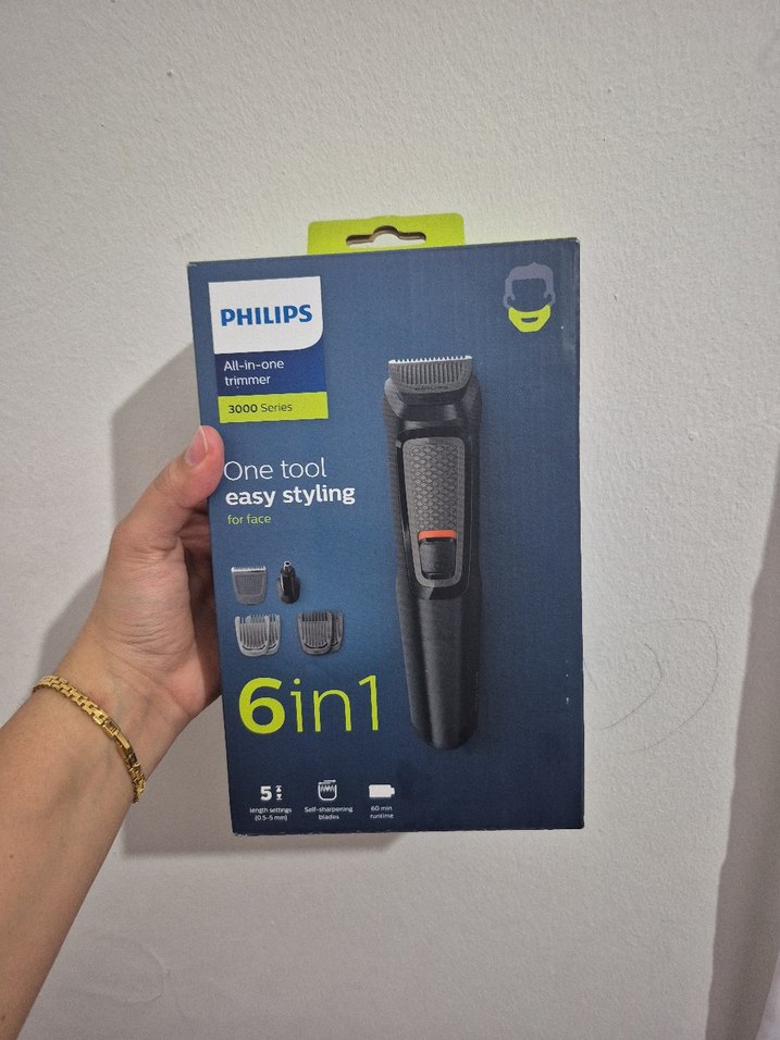 Philips 6'sı 1 arada tıraş makinesi, yüz bakımı için kolay şekillendirme sağlar. Koyu gri renkte, 3000 Serisi ürünüdür. ✂️ Ürünü 27.01.2026 tarihinde migrostan aldım ürünü kontrol etmek için sadece kutusunu açtım kullanılmadı kutusu geri kapatıldı faturası ve garanti belgesi var.