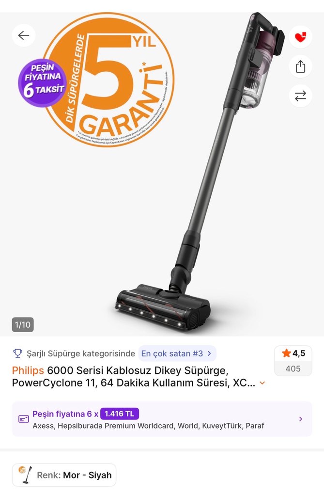 Philips 6000 Serisi kablosuz dikey süpürge PowerCyclone 11 teknolojisi ile 64 dakika kullanım süresi sunar. Kullanılmadı. İhtiyaç fazlası olduğu için satılık