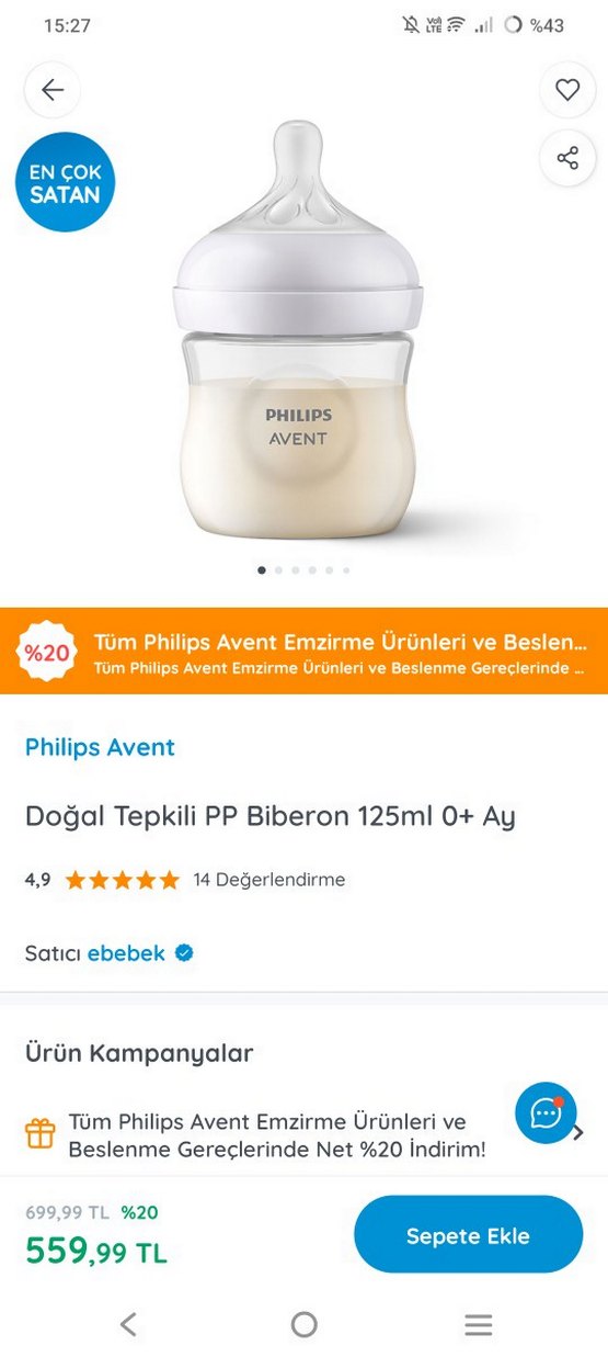 Philips Avent 125ml kapasiteli, 0+ ay için uygun doğal tepki tasarımlı PP bebek biberonu. Rahat beslenme sağlar. emziği hijyen adı altında yollamicam 125 ml biberon ve kapağı dahil iç emzikk yoktur