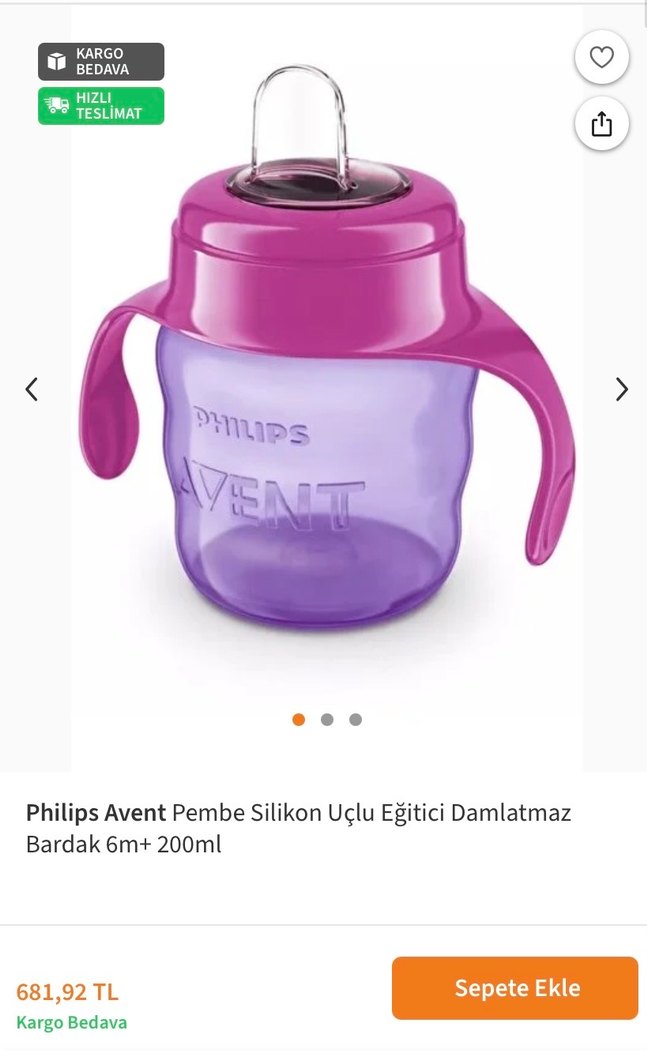 6 ay ve üzeri bebekler için Philips Avent 200ml kapasiteli, silikon uçlu, damlatmaz özellikli pembe eğitim bardağı. Phılıps avent silikon uçlu 200 ml damlatmaz bardak.Son fotoda göreceğiniz minik deliği kızım ısırdı büyütmüş oldu çok su geliyove kapağını kaybettim o yüzden defoluyu seçip uyguna yüklüyorum lütfen bakarak alınız