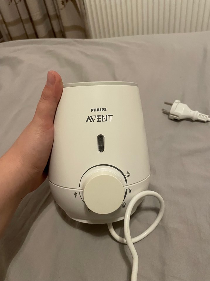 Philips Avent marka gri renkte, ayarlanabilir sıcaklık kontrolü ve kompakt tasarıma sahip biberon ısıtıcı. Güç kablosu ile birlikte.