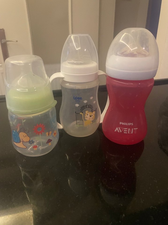 Philips Avent'in pastel renklerde farklı boyut ve tasarımlarda 3'lü bebek biberon seti.