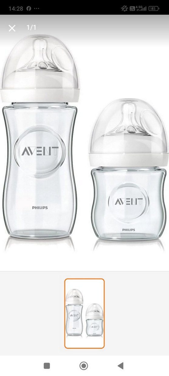 Philips Avent bebek biberon seti, ölçü işaretli iki beyaz şişe ve yumuşak silikon emzik içerir.