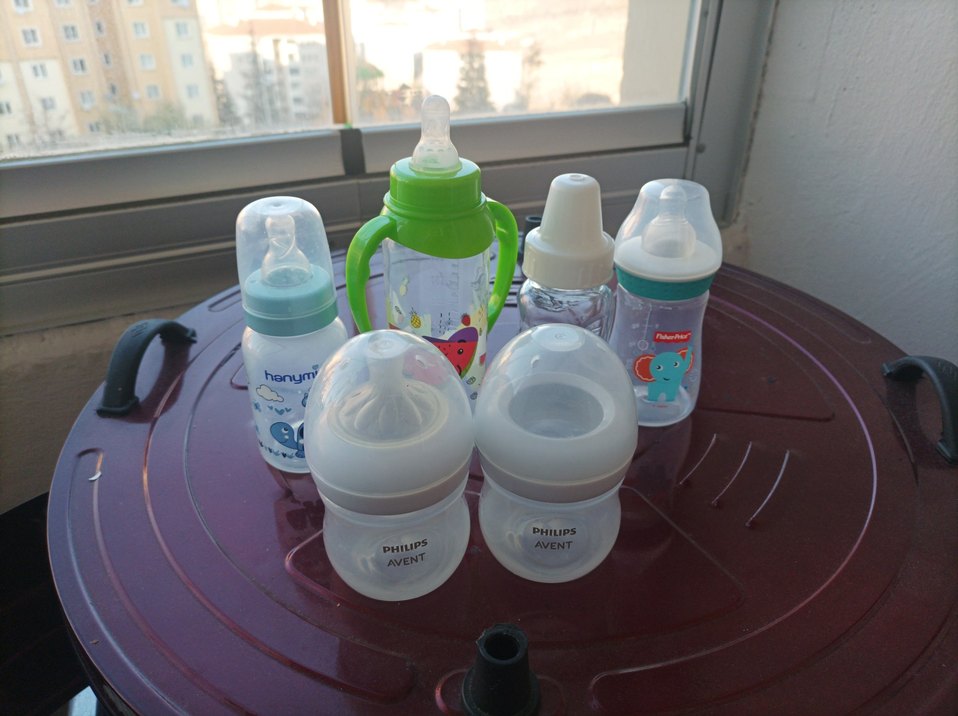 Philips Avent markalı beyaz biberon seti, yumuşak silikon emzikli ve ölçü işaretli, rahat besleme sağlar.
