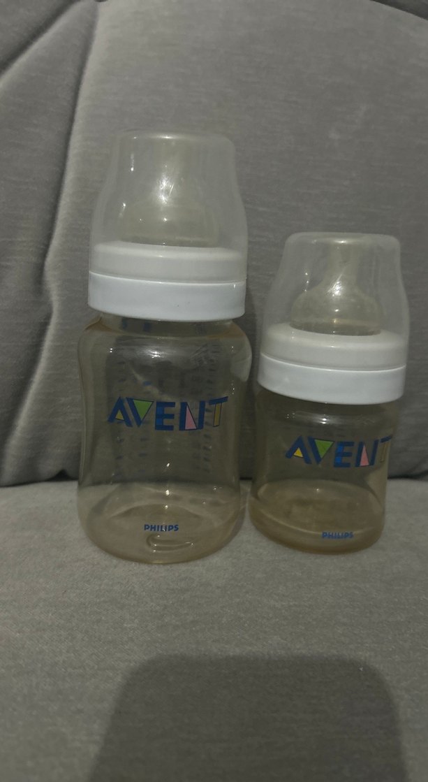Philips Avent markalı, ölçü işaretli ve yumuşak silikon emzikli iki adet bebek biberon seti. Kolay kullanım ve temizlik sağlar. 270/125 ml