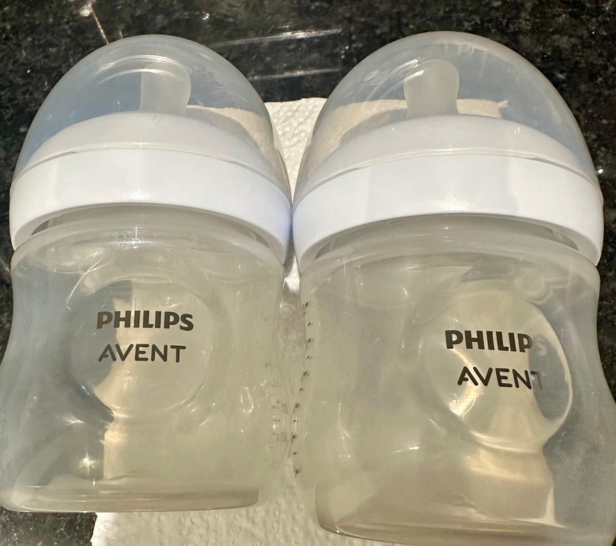 Philips Avent markalı, beyaz ve gri detaylı, ölçü işaretli, yumuşak silikon emzikli iki adet bebek biberonu. 260 ml 2 tane hiç kullanılmamış olan biberon 125 ml 2 tane bikaç kere kullanılmış biberon Uçlar 2 tane 2 numara 2 tane 3 numara TOPLAM 4 biberon vardır