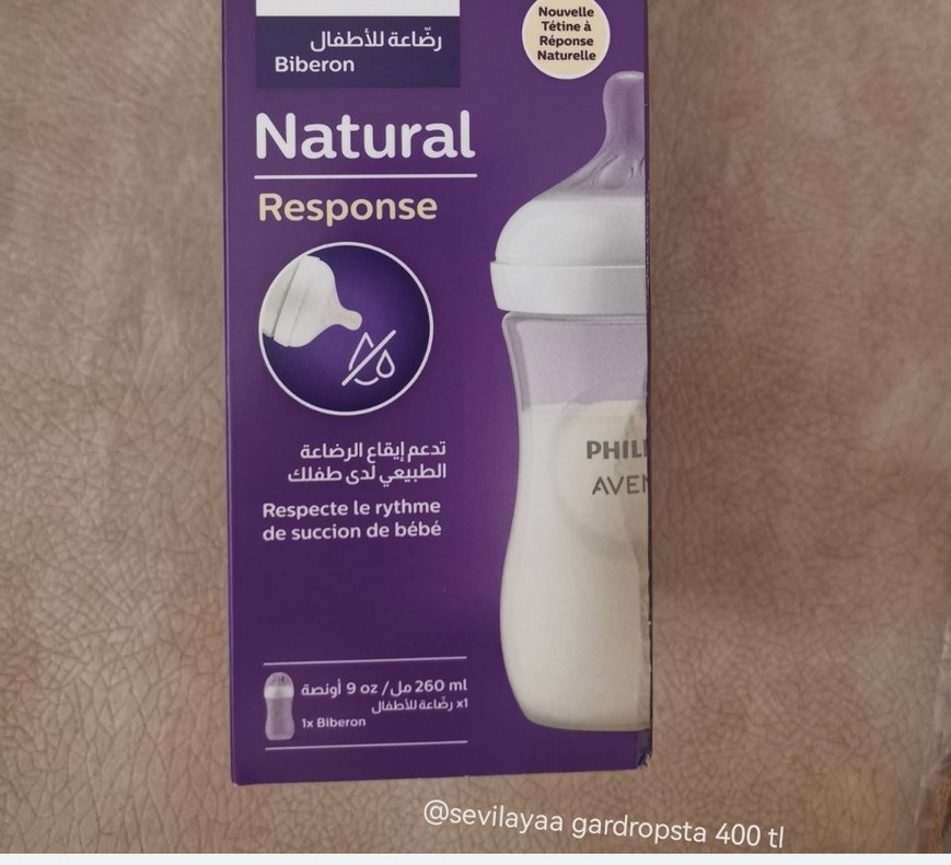 Philips Avent Natural Response bebek biberonu, pastel bej renkte, 260 ml kapasite, bebeğin doğal emme ritmine destek sağlar.