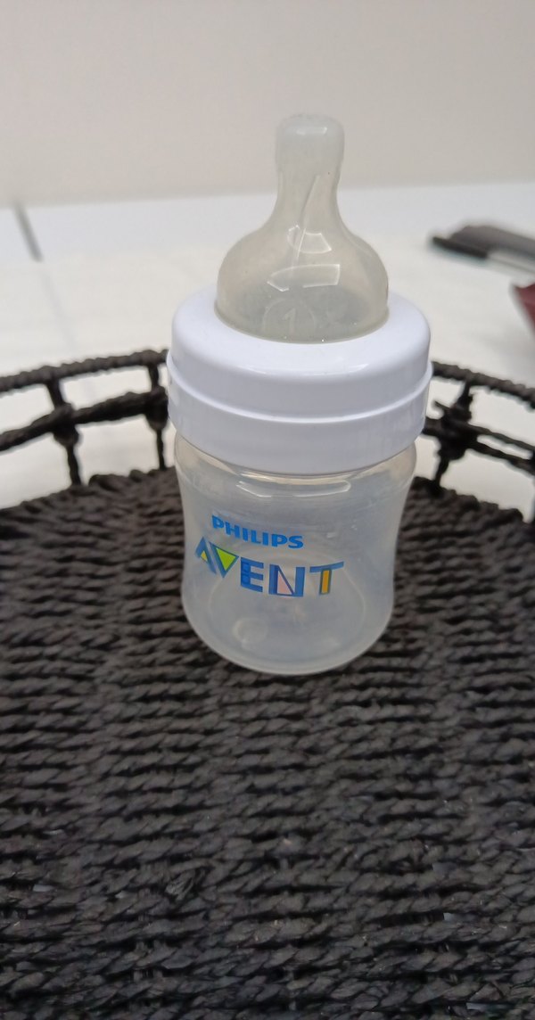 Philips Avent markalı, beyaz kapaklı ve yumuşak emzikli şeffaf bebek biberonu. Rahat besleme için tasarlanmıştır.
