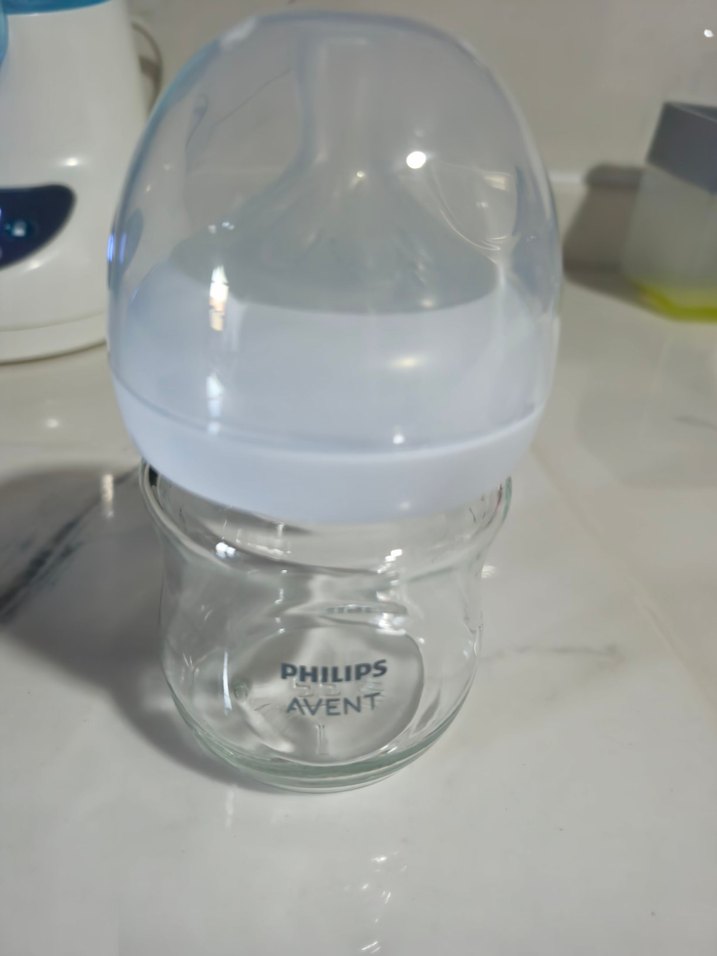 Philips Avent markalı, beyaz kapaklı ve yumuşak emzikli şeffaf bebek biberonu. Kolay temizlenir ve kullanılır.