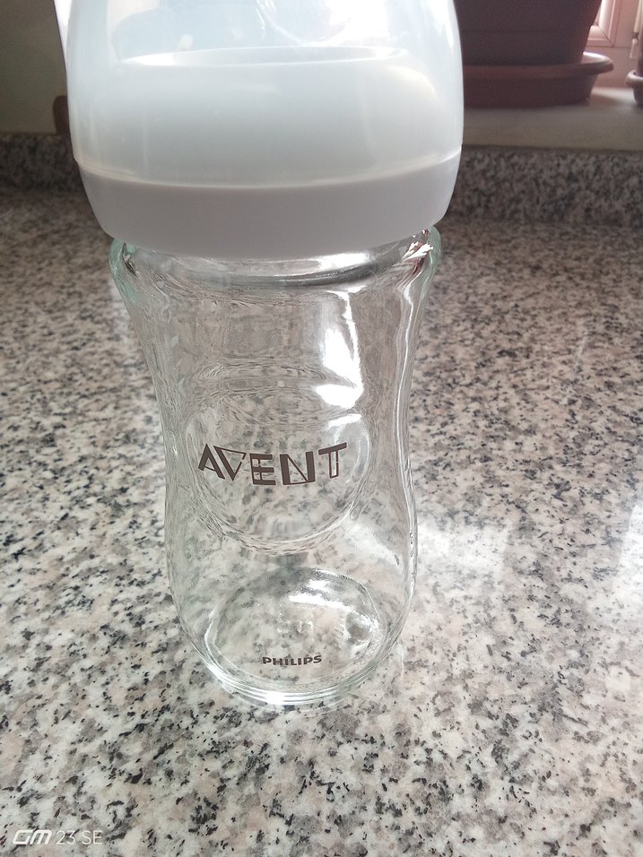Philips Avent bebek biberonu, beyaz ve gri kapaklı şeffaf tasarıma sahiptir. Koruyucu kapak içerir.
