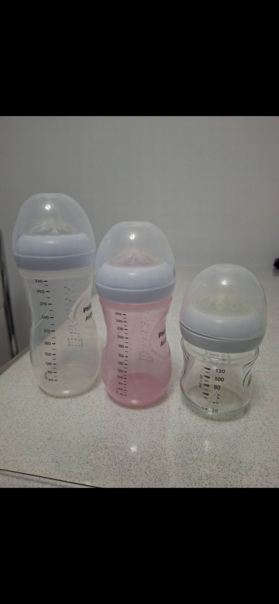 Pastel renklerde 3'lü bebek biberon seti, ölçü işaretli ve koruyucu kapaklıdır. Bebek besleme için uygundur. Tek adet fiyatıdır