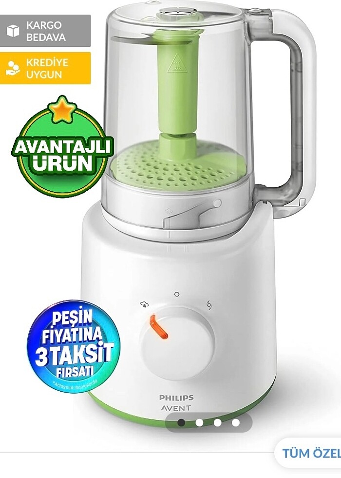 Philips Avent Buharlı Pişirici , hem blendır hem buharlı pişirici ek gıda döneminin vazgeçilmezi. hiçbir sorunu yoktur. parçaları tamdır . kutusu ve kitapçıkları vardır.