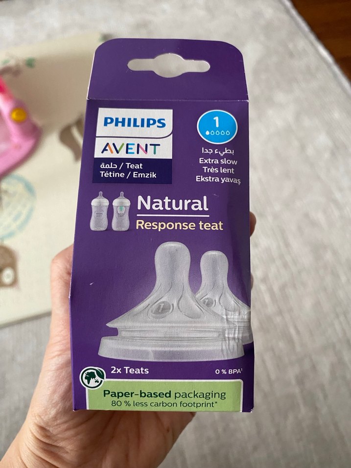 philips avent natural responsable biberon emziği 1 numara, 0 ay. KUTU İÇİNDE 1 ADET emzik var, biri kullanıldı Philips avent Doğal Yanıtlı emzik, ekstra yavaş akış sağlar.