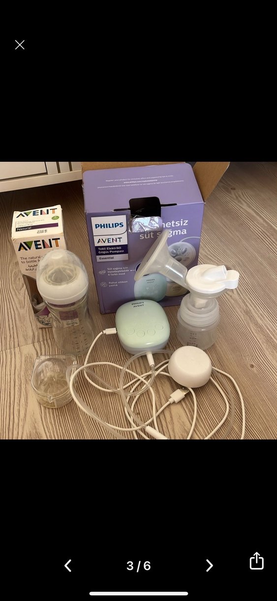 Philips Avent beyaz elektrikli göğüs pompası, eller serbest kullanım ve kolay süt toplama için şişeler ve aksesuarlarla birlikte gelir. USB ile şarj edilir. Temiz ürün sağlam bir skıntısı yoktur yanında cam biberon ve başlıklar hediyedir 2 ve 3 numara başlık