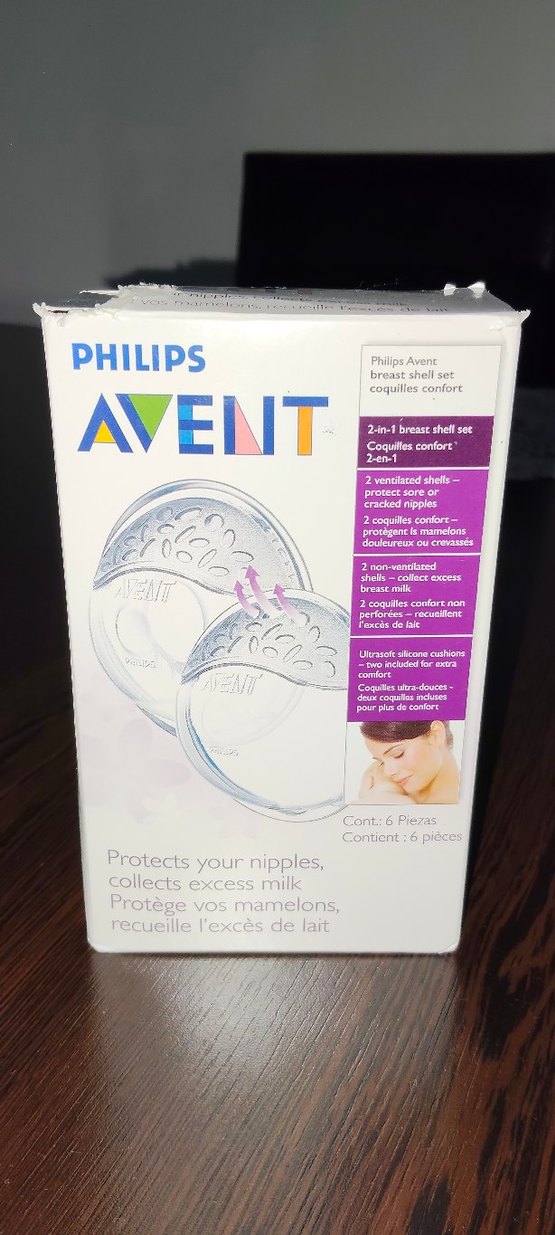Philips Avent göğüs kalkanı seti, meme uçlarını koruyan ve fazla sütü toplayan 2 havalandırmalı kabuk ve yumuşak silikon yastıklarla ekstra rahatlık sağlayan 6 parçadan oluşur.